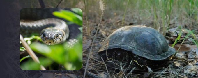 Σήμερα η Moje σας προσφέρει να δοκιμάσετε την προσοχή σας με τη βοήθεια μιας όμορφης φωτογραφίας. Στην εικόνα μπορείτε να δείτε μια μεγάλη χελώνα κρυμμένη στο καβούκι της. Περιβάλλεται από ξηρό και πράσινο γρασίδι, κλαδιά και δέντρα.
